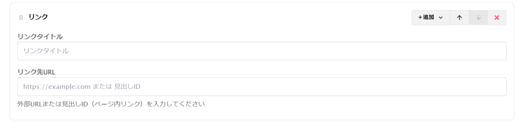 ※「URL」欄に、見出しID・サブ見出しIDを入力すると、各見出しに移動できるリンクを作成できます。