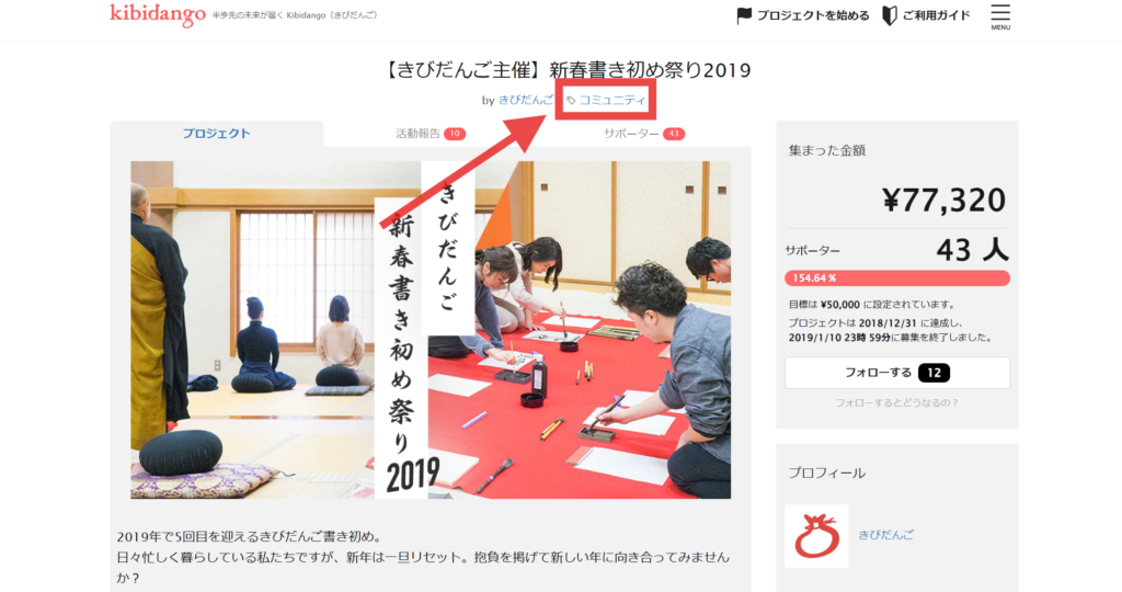 カテゴリ名をクリックすることで同カテゴリのプロジェクト一覧が表示されるため、近いカテゴリを設定するとそのジャンルに興味がある人の目に触れる可能性が少し広がります。